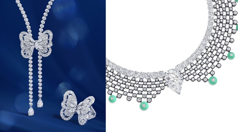 在坚持业界最高的钻石品质和切割标準下,De Beers 可以确保其珠宝作品中每颗钻石无可挑剔的比例、卓越的对称性和光线反射。因为其优先考虑的是钻石的美感和光彩,而非尺寸或重量,像是这次展出重量自10克拉至30克拉不等的椭圆形、心形、枕形、梨形与圆形明亮式等不同精湛切割钻石,赋予每颗钻石独一无二的美感与璀璨灵魂。